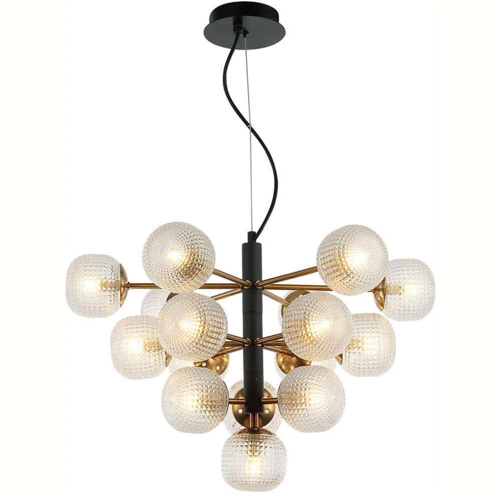 Κλασσικό δεκαεξάφωτο φωτιστικό οροφής με διάφανες σφαίρες 10 εκατοστών από ανάγλυφο γυαλί.