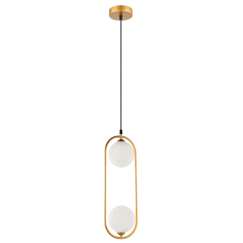 Μοντέρνο δίφωτο φωτιστικό οροφής με λευκές σφαίρες από οπάλ γυαλί σατινάτο.