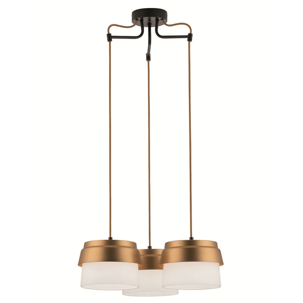 Κρεμαστό τρίφωτο φωτιστικό οροφής με γυαλί σε λευκό ματ χρώμα και μεταλλική ανάρτηση σε μαύρο-χρυσό χρώμα.