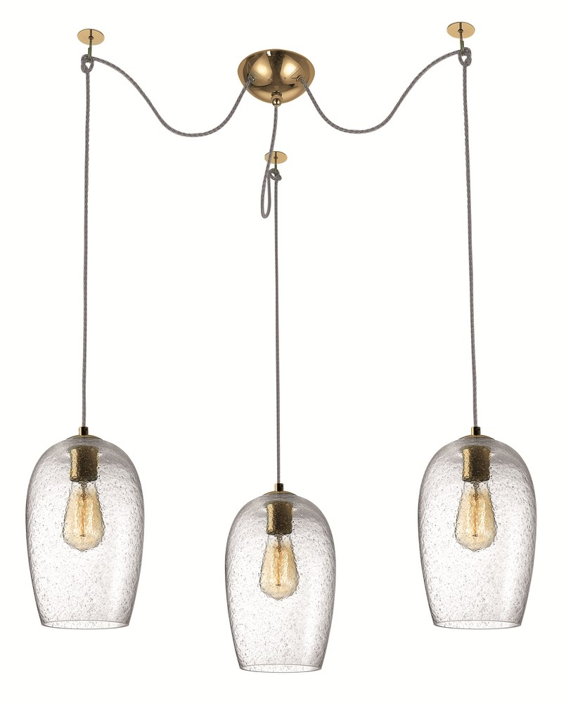 Τρίφωτο φωτιστικό οροφής με διάφανο φυσητό γυαλί και οξυντέ (μπρονζέ) ανάρτηση.