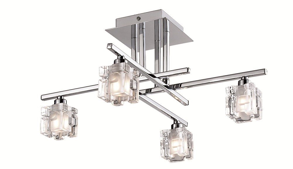 Τετράφωτη πλαφονιέρα με πρισματικά κρύσταλλα και επιχρωμιωμένη ανάρτηση.