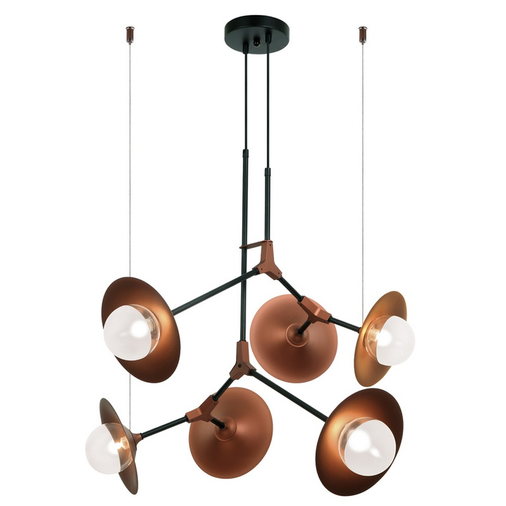 Μοντέρνο εξάφωτο φωτιστικό οροφής με γυάλινες σφαίρες και μεταλλικό σκελετό σε μαύρο-χάλκινο χρώμα.