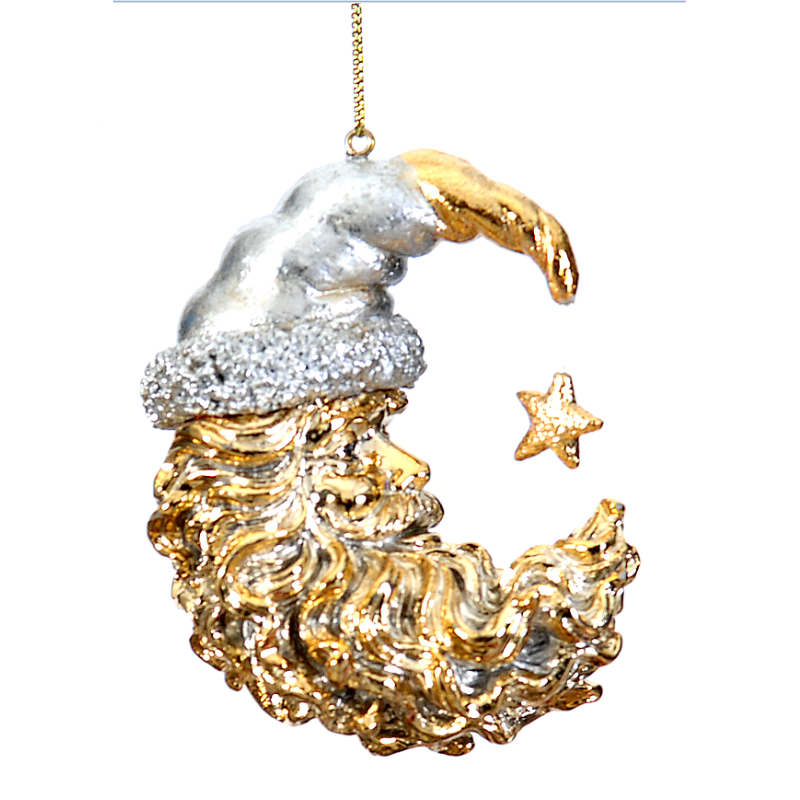 Δώστε μια παραμυθένια πινελιά στη χριστουγεννιάτικη διακόσμηση σας με το επιχρυσωμένο διακοσμητικό Άγιος Βασίλης σε φεγγάρι από polyresin, διαστάσεων 9cm. Ο μοναδικός σχεδιασμός και η πολυτελής χρυσή επίστρωση το καθιστούν ιδανικό για κάθε γιορτινή σύνθεση, κλασική ή μοντέρνα.
