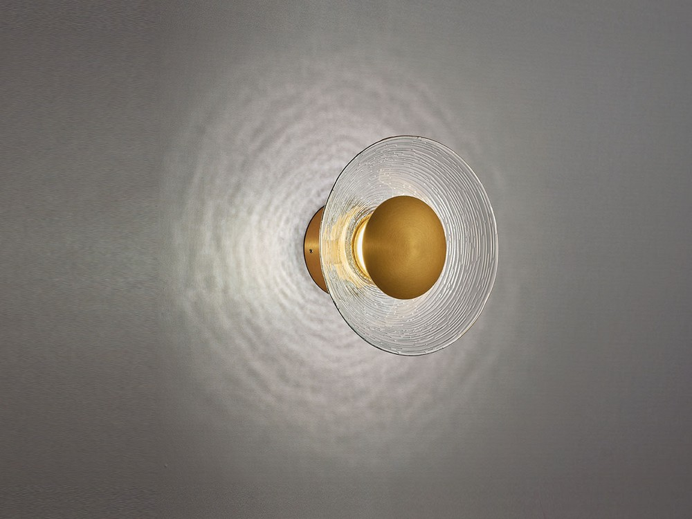 Μοντέρνα απλίκα LED με διάφανο κωνικό γυαλί και μεταλλική βάση σε χρυσό ματ χρώμα.