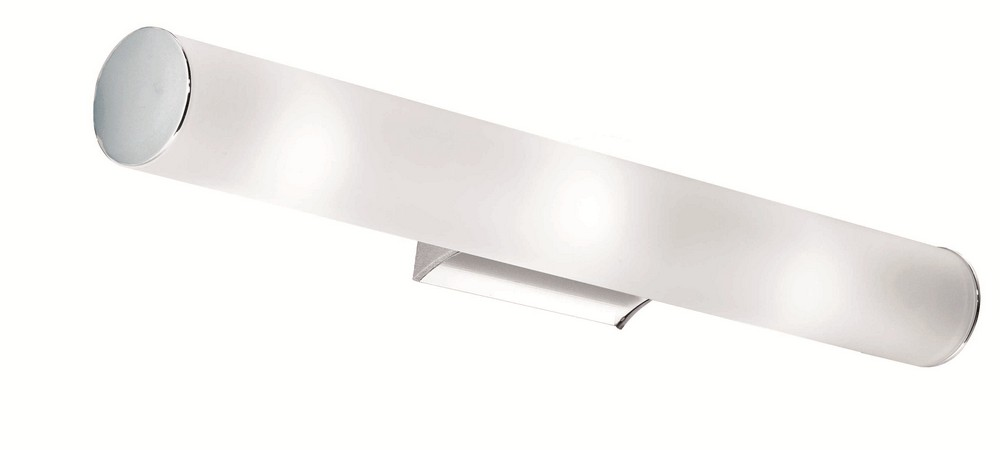 Απλίκα μπάνιου με λευκό γυαλί σατινάτο και μεταλλική βάση σε χρώμιο.