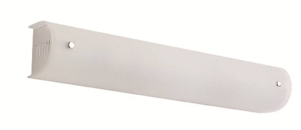 Μοντέρνα απλίκα μπάνιου με λευκό γυαλί σατινάτο, λευκή βάση και δέσιμο σε χρώμιο.