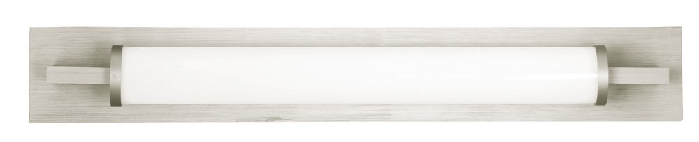 Μοντέρνα απλίκα μπάνιου με γυάλινο κύλινδρο σε λευκό χρώμα και μεταλλική βάση σε νίκελ ματ.