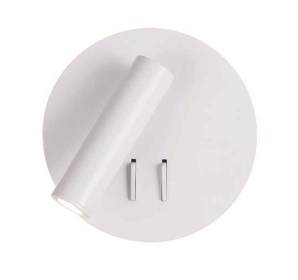 Μοντέρνα απλίκα κατασκευασμένη από μέταλλο σε λευκό χρώμα, με δύο διακόπτες και δυνατότητα κίνησης.