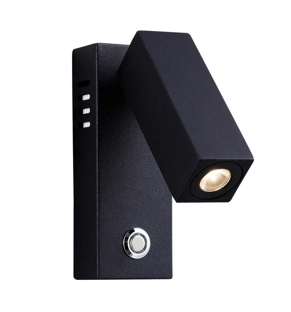 Μοντέρνα απλίκα κατασκευασμένη από μέταλλο σε μαύρο χρώμα, με διακόπτη και δυνατότητα κίνησης.