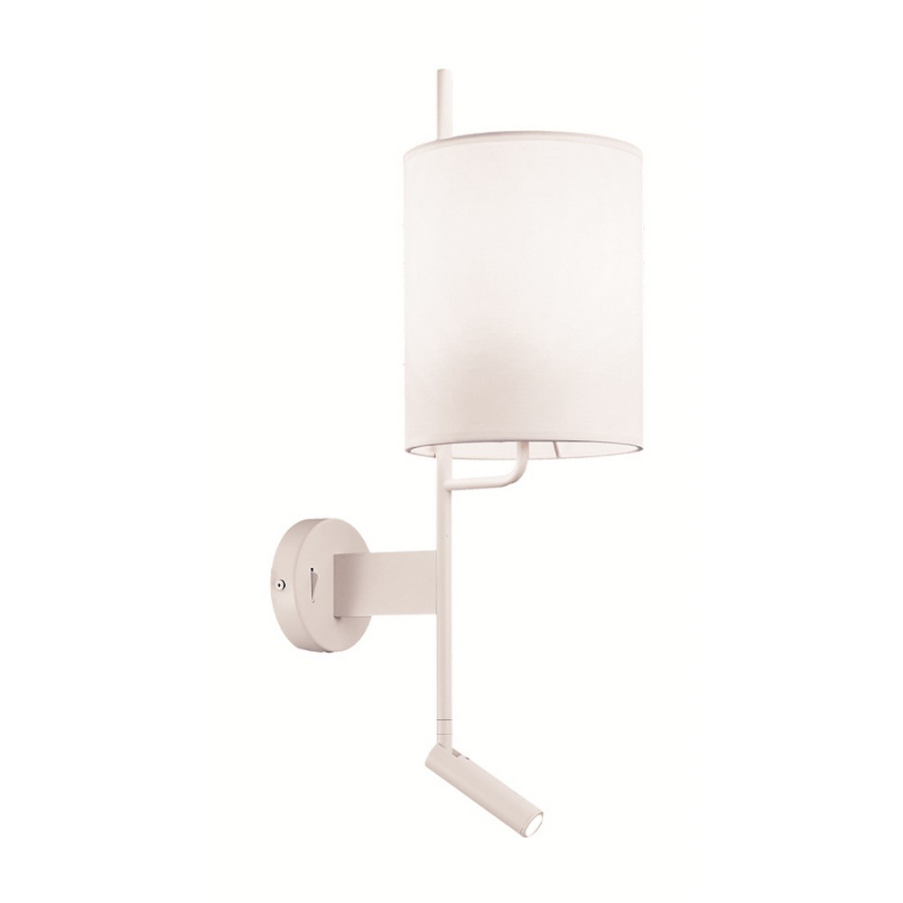 Μοντέρνα απλίκα με λευκό καπέλο από πλαστικοποιημένο ύφασμα και μεταλλική λευκή βάση.