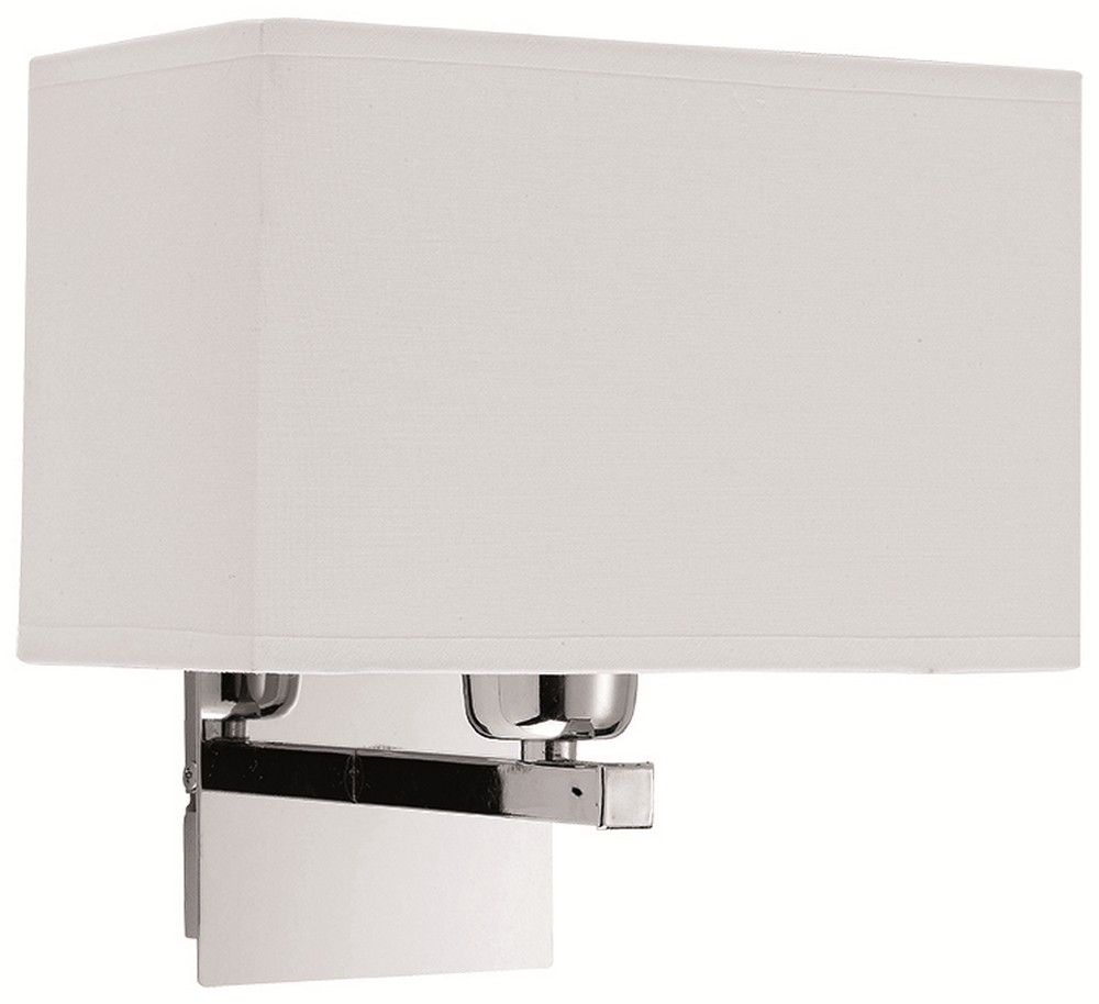 Μοντέρνα απλίκα με λευκό καπέλο από πλαστικοποιημένο ύφασμα και μεταλλική βάση σε χρώμιο.