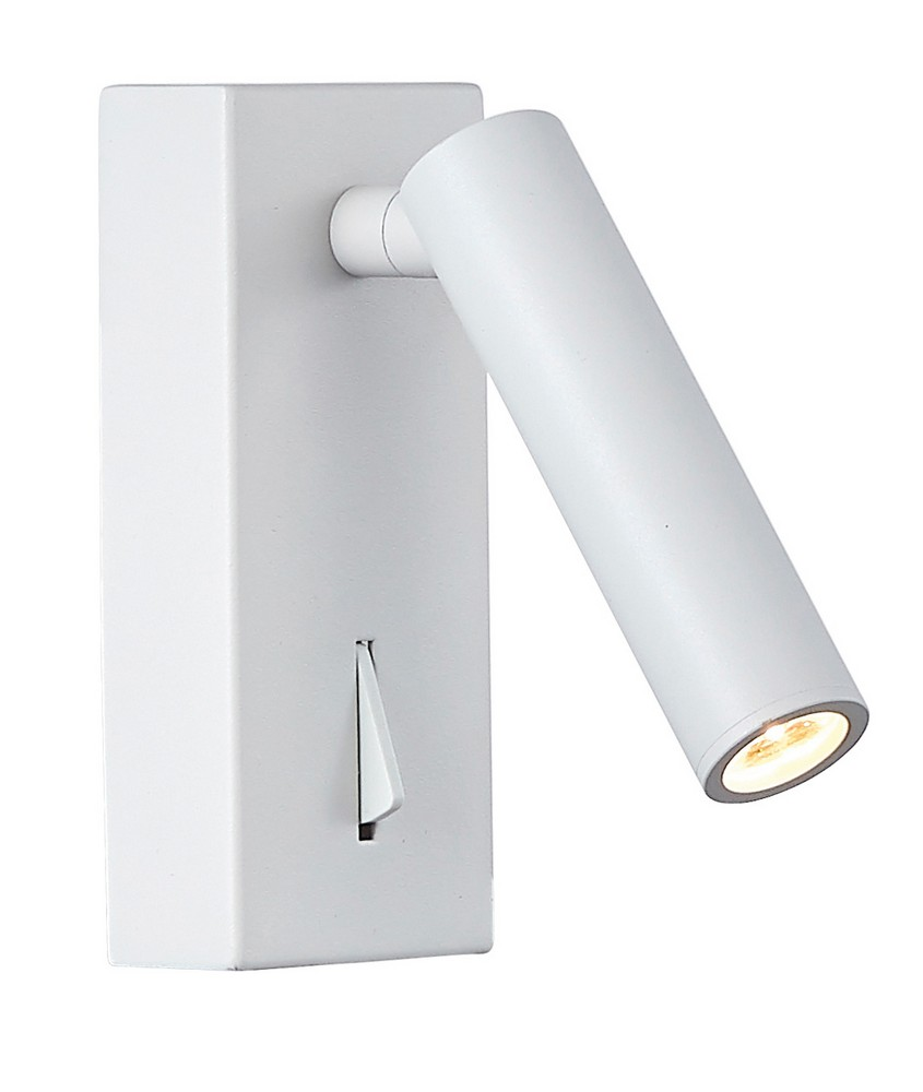 Μοντέρνα απλίκα τοίχου από μέταλλο σε λευκό χρώμα με κινούμενο σποτ και διακόπτη.