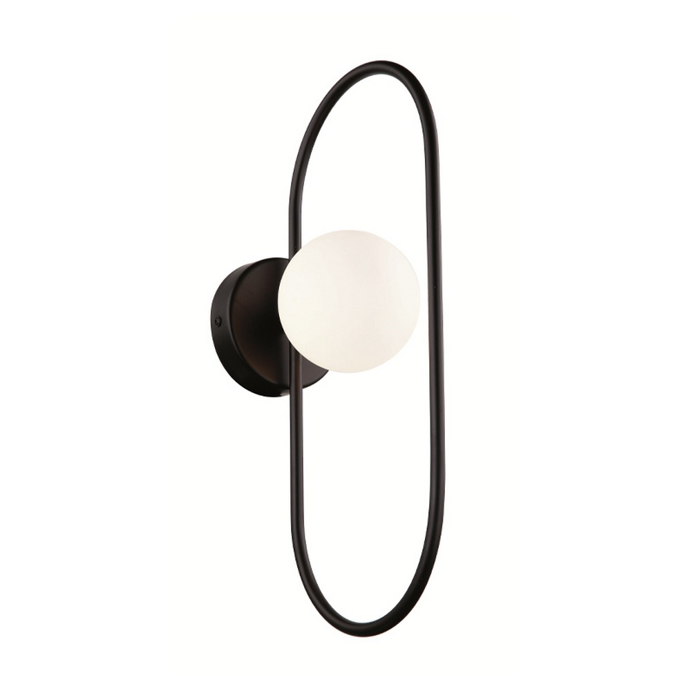 Απλίκα με γυαλί οπάλ σατινάτο σε λευκό χρώμα και μεταλλική μαύρη βάση.