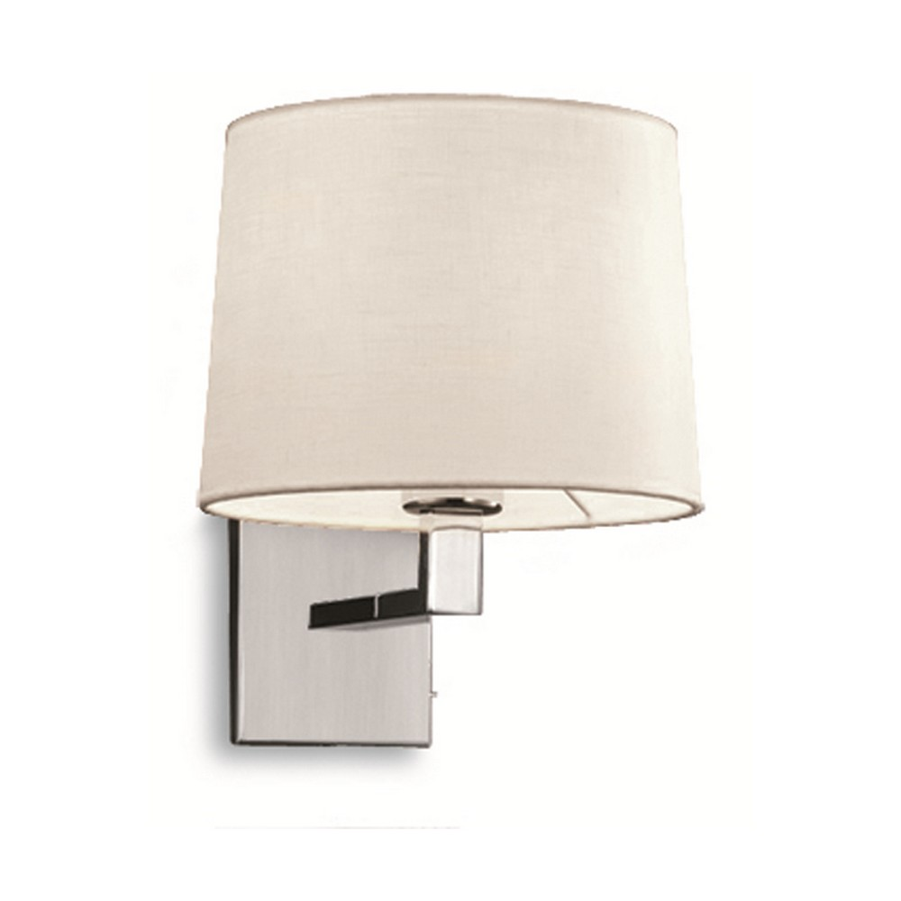 Μοντέρνα απλίκα με λευκό καπέλο από πλαστικοποιημένο ύφασμα και βάση σε νίκελ ματ χρώμα με διακόπτη.