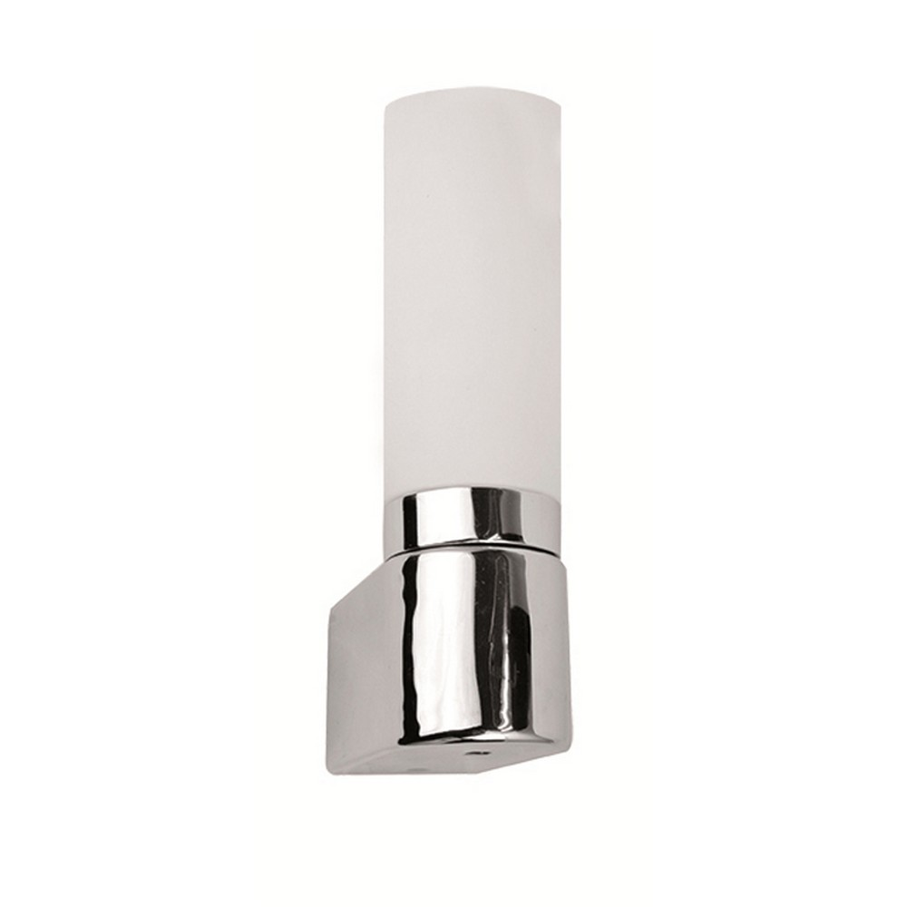 Μοντέρνα απλίκα μπάνιου με λευκό γυαλί οπάλ σατινάτο και βάση σε χρώμιο.