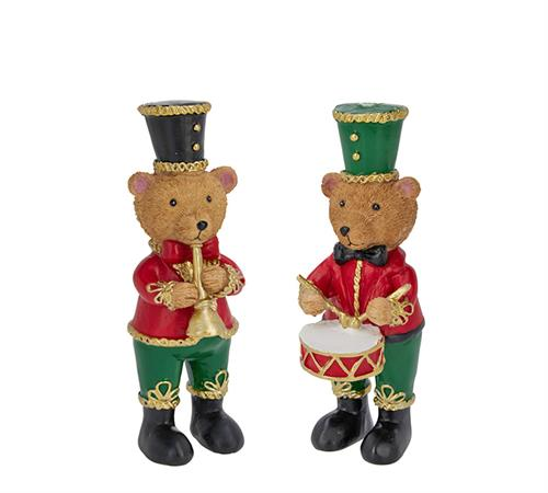 Τα αρκουδάκια με μουσικά όργανα και στολή, ύψους 17.5cm, προσθέτουν μια χαριτωμένη και γιορτινή πινελιά στη χριστουγεννιάτικη διακόσμηση. Διατίθενται σε δύο σχέδια και είναι ιδανικά για ράφια, συνθέσεις ή ως δώρο.