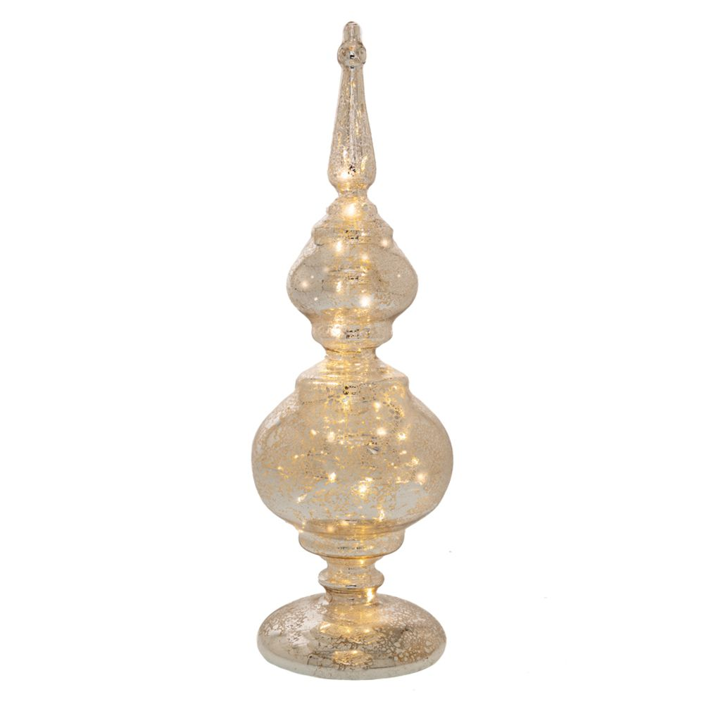 Ο ασημί αντικέ γυάλινος φωτιζόμενος κώνος με LED φως (Φ12x37,5 εκ.) είναι το τέλειο διακοσμητικό για να προσθέσει μία μαγευτική ατμόσφαιρα στον χώρο σας. Ιδανικός για τις γιορτές, ο φωτισμένος κώνος δημιουργεί μια ζεστή και γιορτινή διάθεση, ενώ η μπαταρία του τον καθιστά πρακτικό για διάφορες διακοσμήσεις, τόσο σε εσωτερικούς όσο και σε εξωτερικούς χώρους.