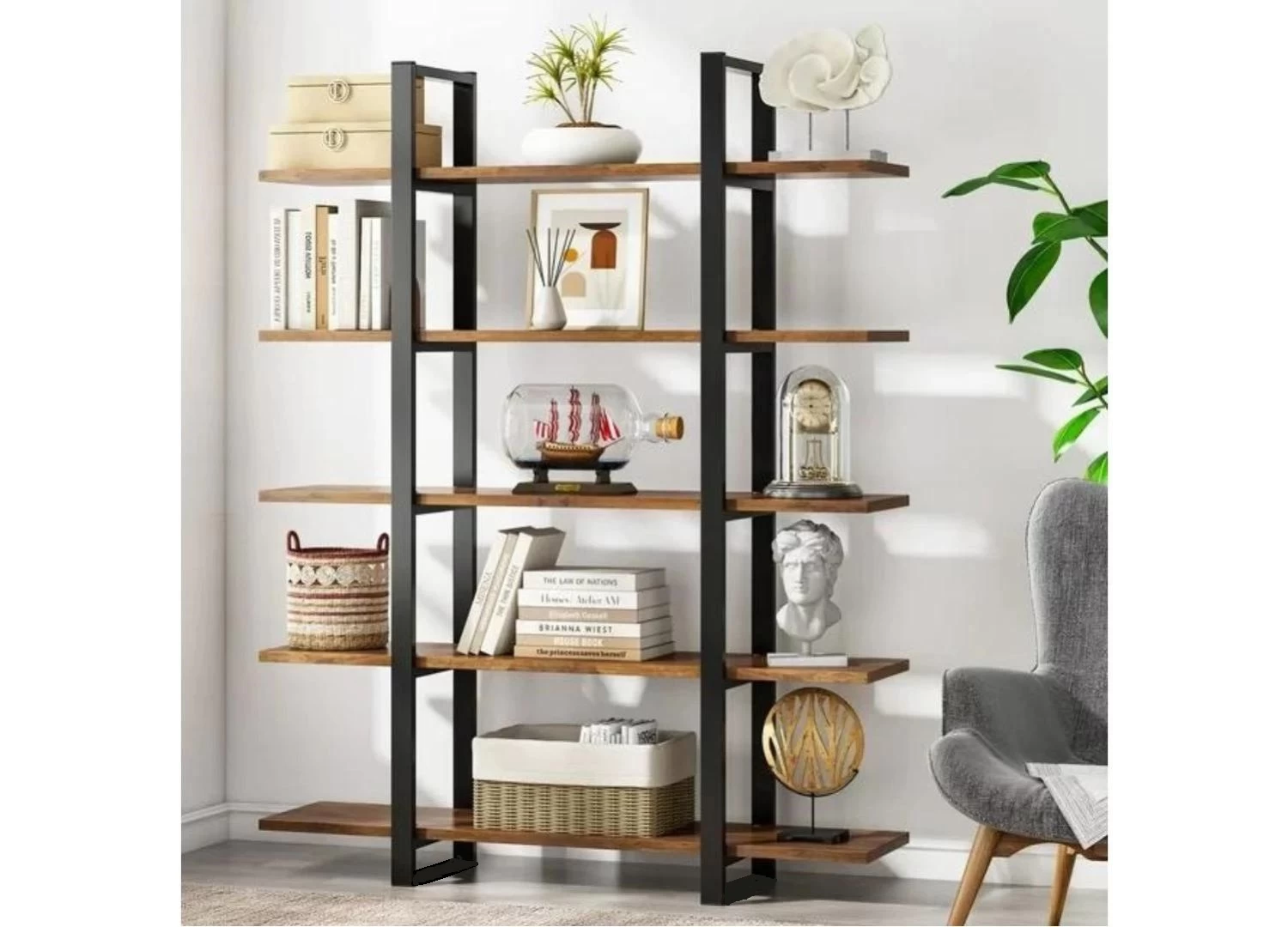 Ραφιέρα τοίχου ελληνικής κατασκευής από ξύλο δρυς ρουστίκ με μεταλλικές λεπτομέρειες σε μαύρο ματ χρώμα.