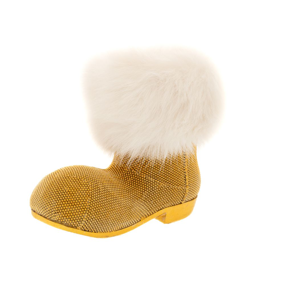 Χρυσή πολυρεζίν μποτά με γούνα (19x9x17 εκ.) – κομψό διακοσμητικό για τις γιορτές, με πολυτελή εμφάνιση και ζεστή αίσθηση για το σπίτι σας.