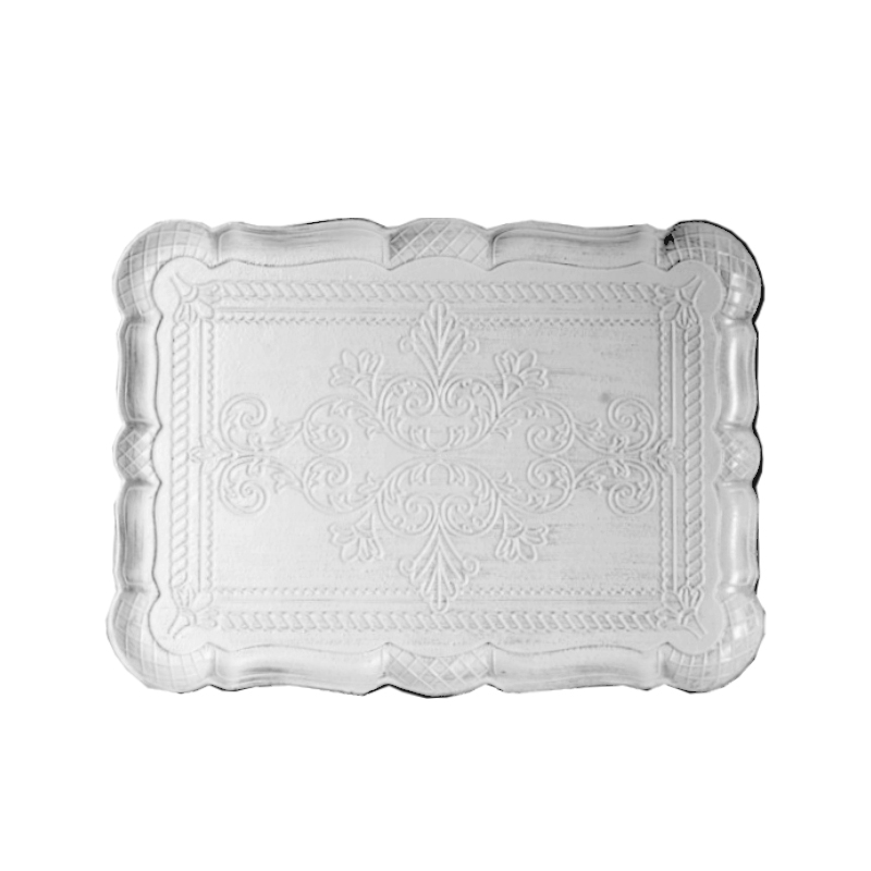 Δίσκος σερβιρίσματος mdf royal art 40x30εκ με λευκή πατίνα, κομψός και πρακτικός για καθημερινή χρήση ή διακόσμηση. Η παλαιωμένη του εμφάνιση προσδίδει vintage χαρακτήρα, ενώ το ανθεκτικό υλικό mdf εξασφαλίζει σταθερότητα και αντοχή. Ιδανικός για σερβίρισμα ροφημάτων, πρωινού ή ως βάση διακοσμητικών αντικειμένων.