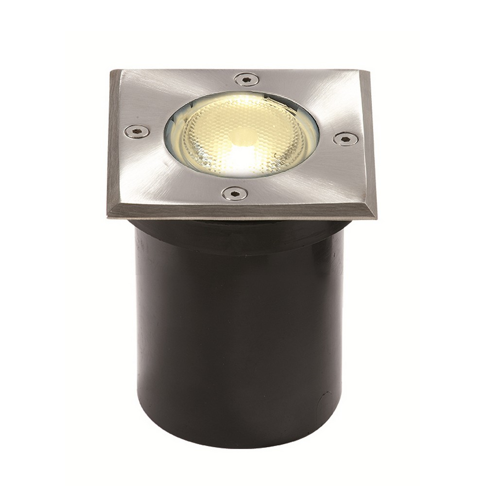 Ανοξείδωτο χωνευτό επιδαπέδιο σποτ εξωτερικού χώρου σε νίκελ ματ χρώμα.