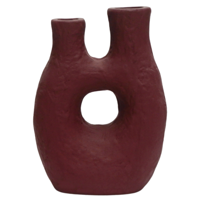 Το χειροποίητο επιτραπέζιο διακοσμητικό βάζο FB94665.03L με δύο στόμια είναι ένα πολύ ιδιαίτερο διακοσμητικό στοιχείο για κάθε χώρο. Είναι κατασκευασμένο εξολοκλήρου από τερακότα με σαγρέ υφή σε ΒΥΣΣΙΝΙ χρώμα, ακολουθώντας την σύγχρονη τάση στην εσωτερική διακόσμηση. Ιδανικό για πληθώρα χρήσεων και χώρων.