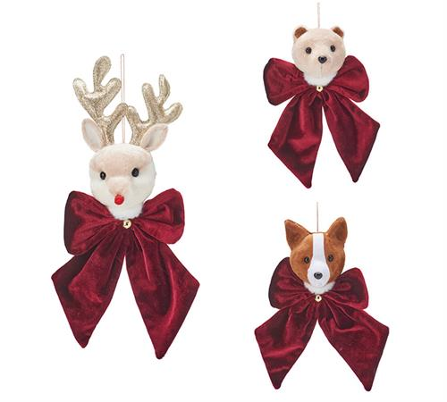 Φιόγκος με σκυλάκι, ελάφι και αρκουδάκι αποτελεί ένα χαριτωμένο και παιχνιδιάρικο γιορτινό διακοσμητικό με ύψος 30cm και μήκος 20cm. Είναι κατασκευασμένος από polyester και συνδυάζει κόκκινες αποχρώσεις που δίνουν έντονη χριστουγεννιάτικη ταυτότητα. Ιδανικός για δέντρα, πόρτες, συρτάρια ή γιορτινές συνθέσεις, προσθέτει ζεστασιά και παιδική μαγεία σε κάθε χώρο.