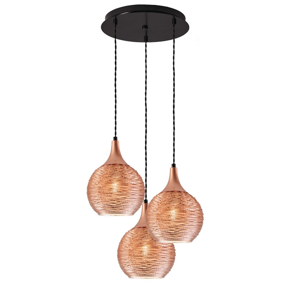 Μοντέρνο τρίφωτο φωτιστικό οροφής με χάλκινο γυαλί και μεταλλική μαύρη ανάρτηση με χάλκινες λεπτομέρειες.