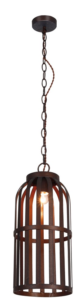 Μοντέρνο φωτιστικό οροφής από μέταλλο σε καφέ χρώμα με ιδιαίτερο σχήμα που θυμίζει κλουβί.