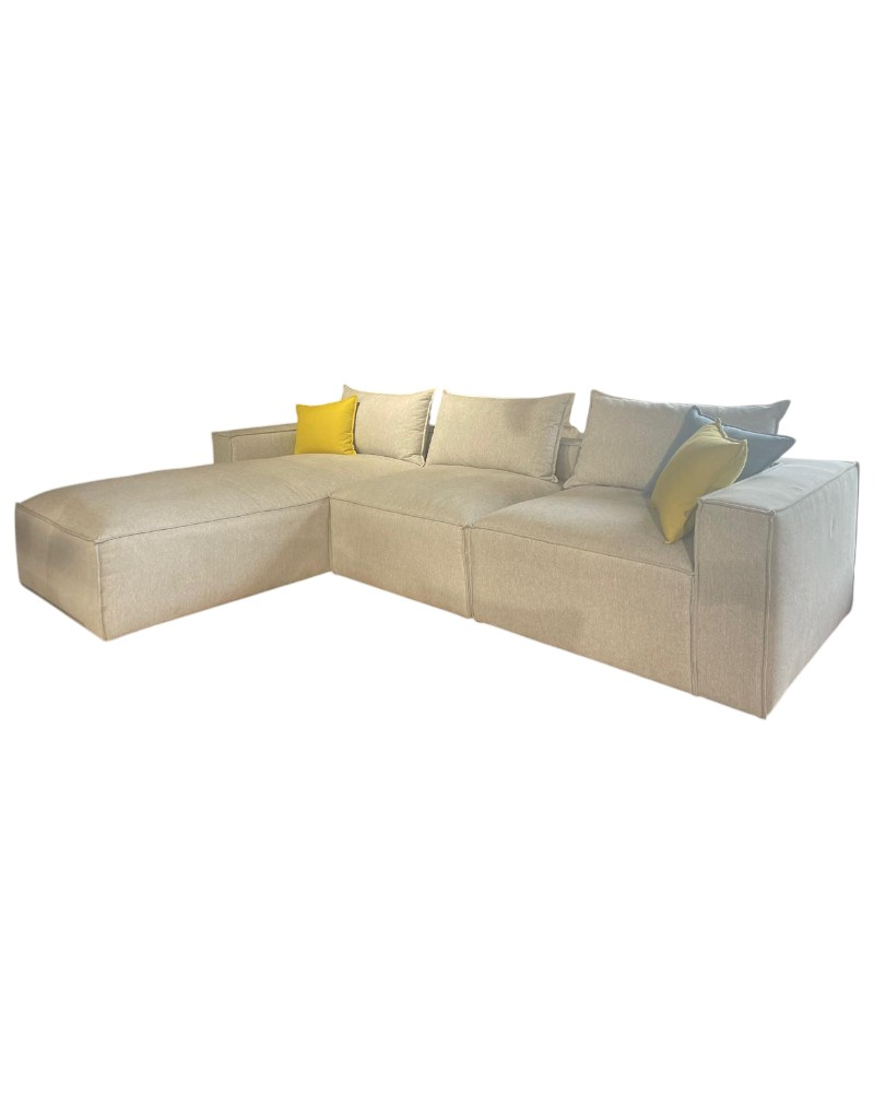 Σαλόνι γωνία πολυμορφική από λευκή ξυλεία , ελληνικής κατασκευής.Ένας ευρύχωρος καναπές γωνία σε σχήμα που αποτελείται από 5 τεμάχια για να φιλοξενεί άνετα όλα τα αγαπημένα σας πρόσωπα. – Διαστάσεις: 295 x 230 x 105.