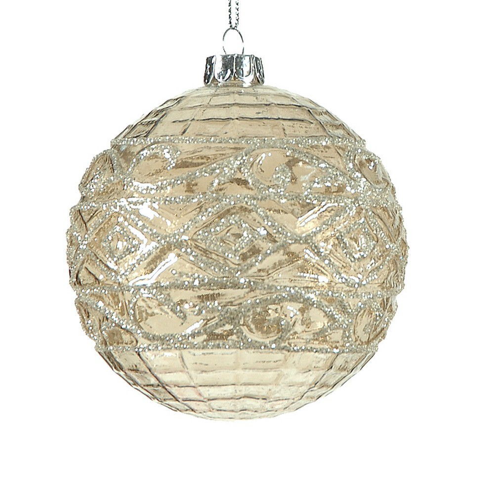 Γυάλινη μπάλα αντικέ λευκη με ασημί glitte