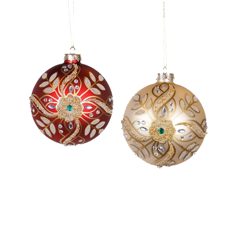 Οι γυάλινες μπάλες σε κόκκινη σαμπανί απόχρωση με χάντρες και glitter, σε σετ 2 τεμαχίων των 10cm, προσφέρουν μια παιχνιδιάρικη και λαμπερή προσθήκη στη χριστουγεννιάτικη διακόσμηση. Ιδανικές για δέντρα, στεφάνια ή γιορτινές συνθέσεις, συνδυάζουν την παραδοσιακή γιορτινή αισθητική με μοντέρνα λάμψη, δημιουργώντας εντυπωσιακό αποτέλεσμα που τραβάει τα βλέμματα.
