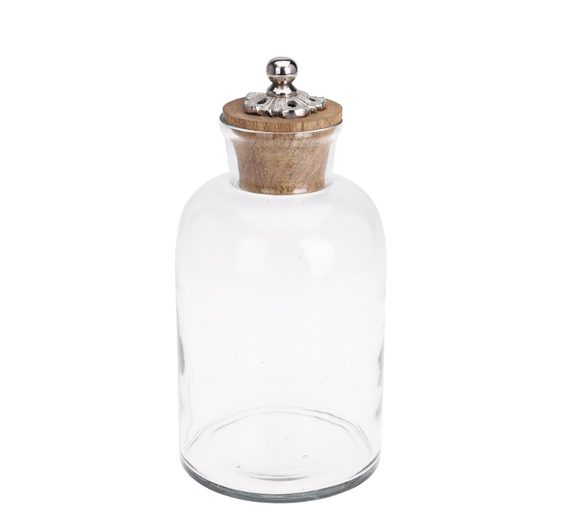 Γυάλινο δοχείο με ξύλινο πώμα&μεταλλική διακόσμηση, 28cm