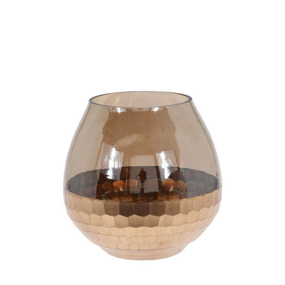 Γυάλινο οβάλ κηροπ/γιο μελί χρ & χρυσή πολυεδρική βάση,10c