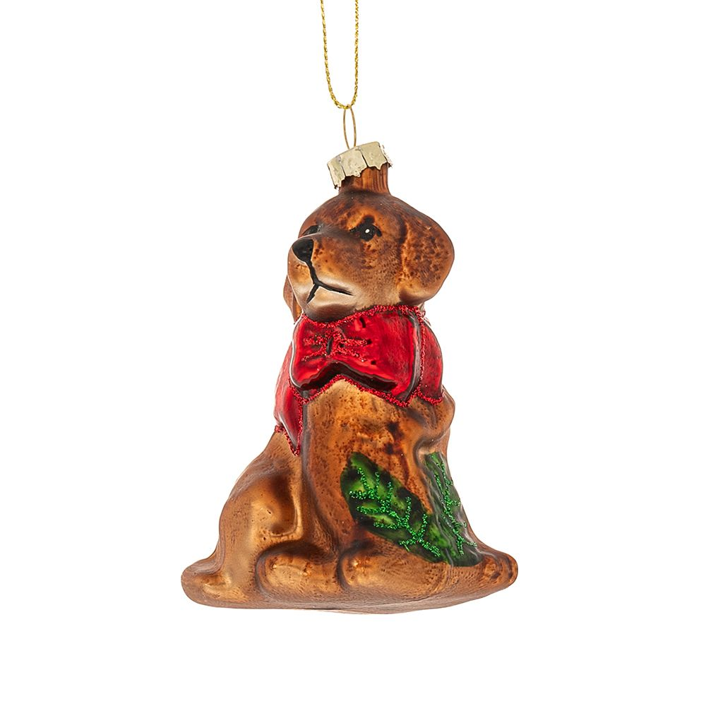 Ο καφέ γυάλινος κρεμαστός σκύλος (7x5x9 εκ.) αποτελεί μια όμορφη και ιδιαίτερη διακοσμητική επιλογή για τη γιορτινή περίοδο ή για όλη τη διάρκεια του χρόνου. Η προσεγμένη κατασκευή του και οι ρεαλιστικές λεπτομέρειες τον καθιστούν έναν υπέροχο στολισμό για οποιοδήποτε χώρο.