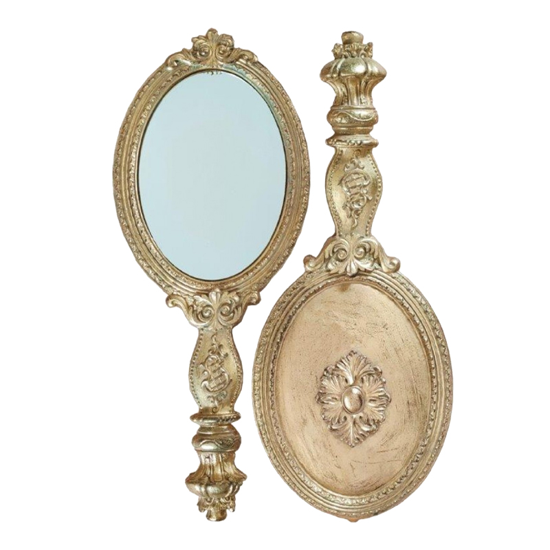Καθρεπτάκι χειρός ξύλινος-polyresin σε αντικέ χρυσό χρώμα για να μεταφερθείτε σε κόσμους παραμυθένιους. Διαστάσεις 12.3x3.5x29Εc