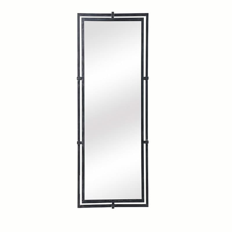 Μεγάλος μεταλλικός καθρέφτης σε μαύρο χρώμα, διαστάσεων 76x6x120εκ. Ιδανικός για σαλόνι, υπνοδωμάτιο ή είσοδο, προσφέροντας κομψότητα και αίσθηση χώρου.