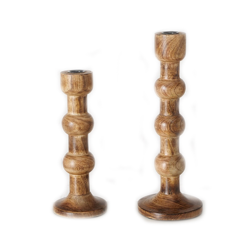 Σετ 2 κηροπήγια κατασκευασμένα από φσικό μάνγκο που θα συμπληρώσουν υπέροχα τη διακόσμησητου στο τραπέζι σας. H26-34cm.