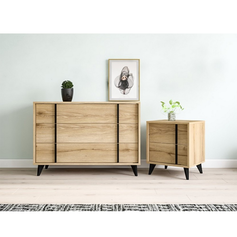 Κομοδίνο με δύο συρτάρια που διαθέτει premium γκρι εσωτερικό συρταριών και αθόρυβο τηλεσκοπικό μηχανισμό πλήρους επέκτασης.