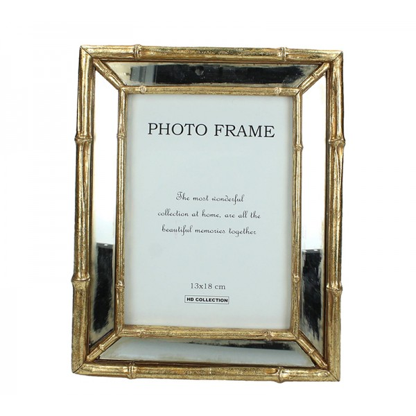 Κορνίζα από πολυρητίνη με σκαλιστά σχέδια bamboo σε χρυσό χρώμα. Διάσταση 13x18.