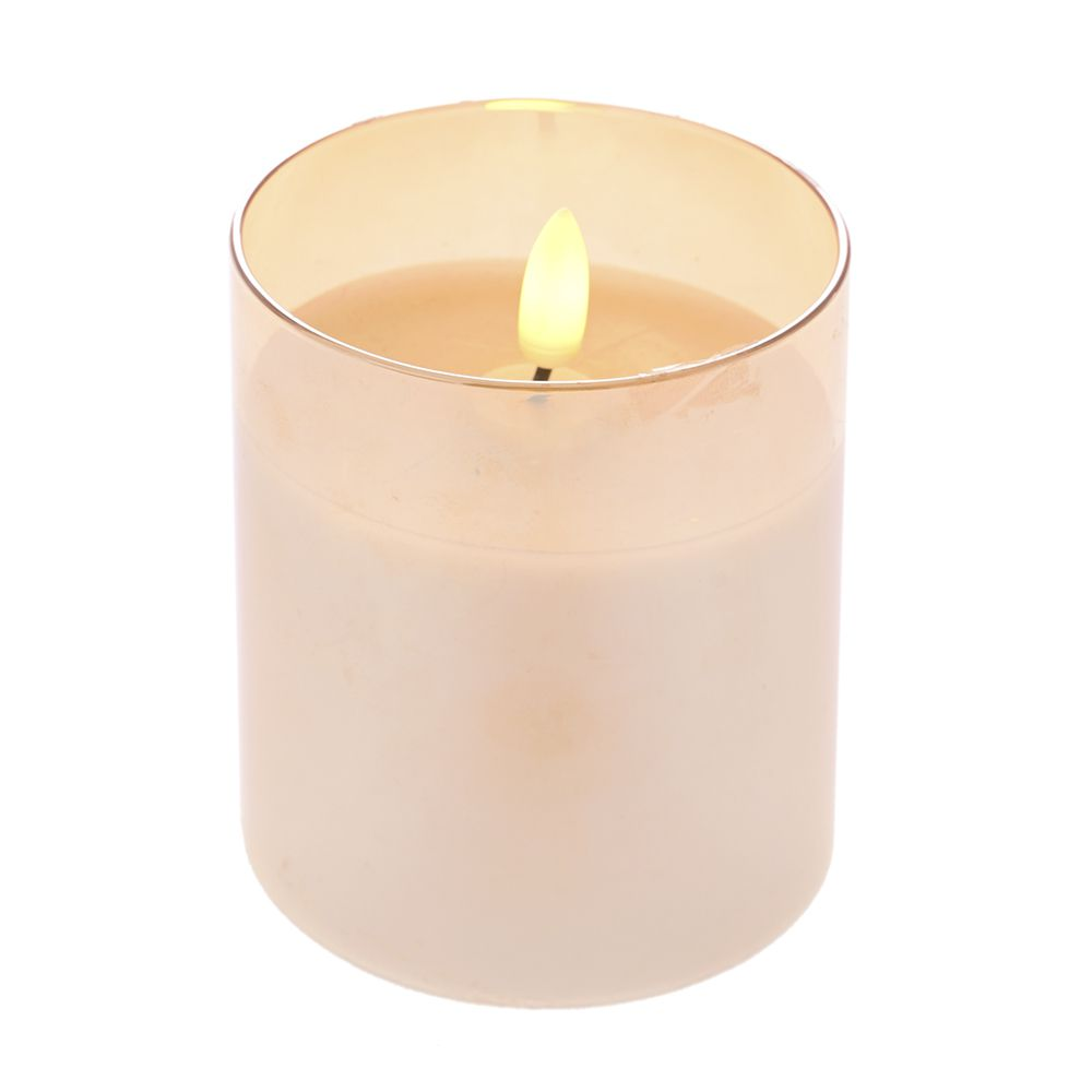 Κρεμ κερί led μπαταρίας 7.5x10 εκ σε μελί γυάλινη βάση, ιδανικό για κομψή και ζεστή διακόσμηση χωρίς φλόγα. η γυάλινη βάση προσθέτει στυλ και λάμψη, ενώ το κερί προσφέρει φυσικό φωτισμό με ρεαλιστικό τρεμόπαιγμα. λειτουργεί με μπαταρίες, ιδανικό για σαλόνι, τραπεζαρία ή υπνοδωμάτιο, δημιουργώντας ατμόσφαιρα χαλάρωσης και ρομαντισμού.