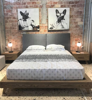 Κρεβάτι BOX από ξύλο δρυς με ανατομικό τελάρο 16 λάττες & μαξιλάρες στο κεφαλάρι χρώματος γκρι.