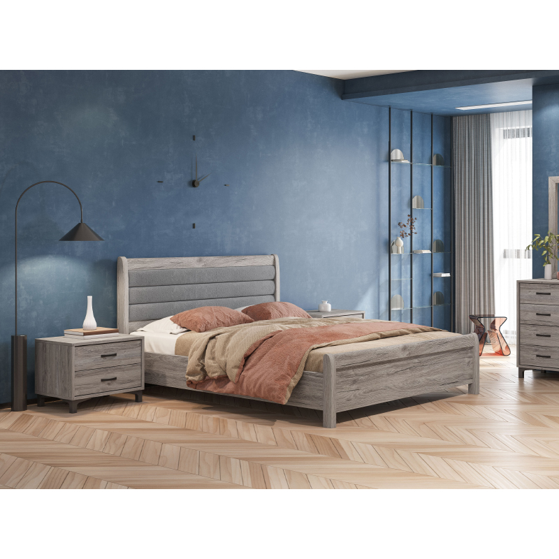 Κρεβάτι N93 κατασκευασμένο από εξαιρετικής ποιότητας μελαμίνη και ύφασμα, ελληνικής κατασκευής. Διαθέσιμο, κατόπιν παραγγελίας, σει πολλές αποχρώσεις ξύλου και υφάσματος.
