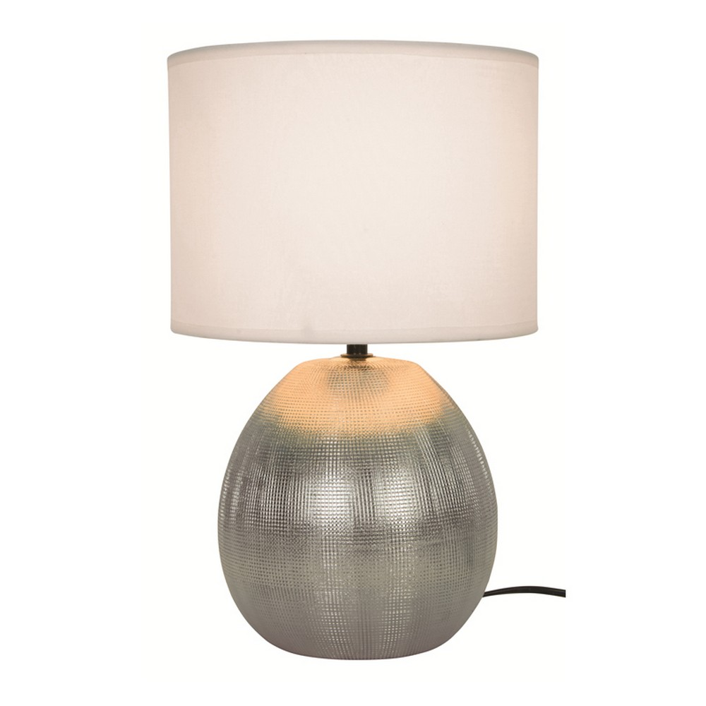 Μοντέρνο πορτατίφ με υφασμάτινο μπεζ καπέλο και κεραμική βάση σε ασημί χρώμα.
