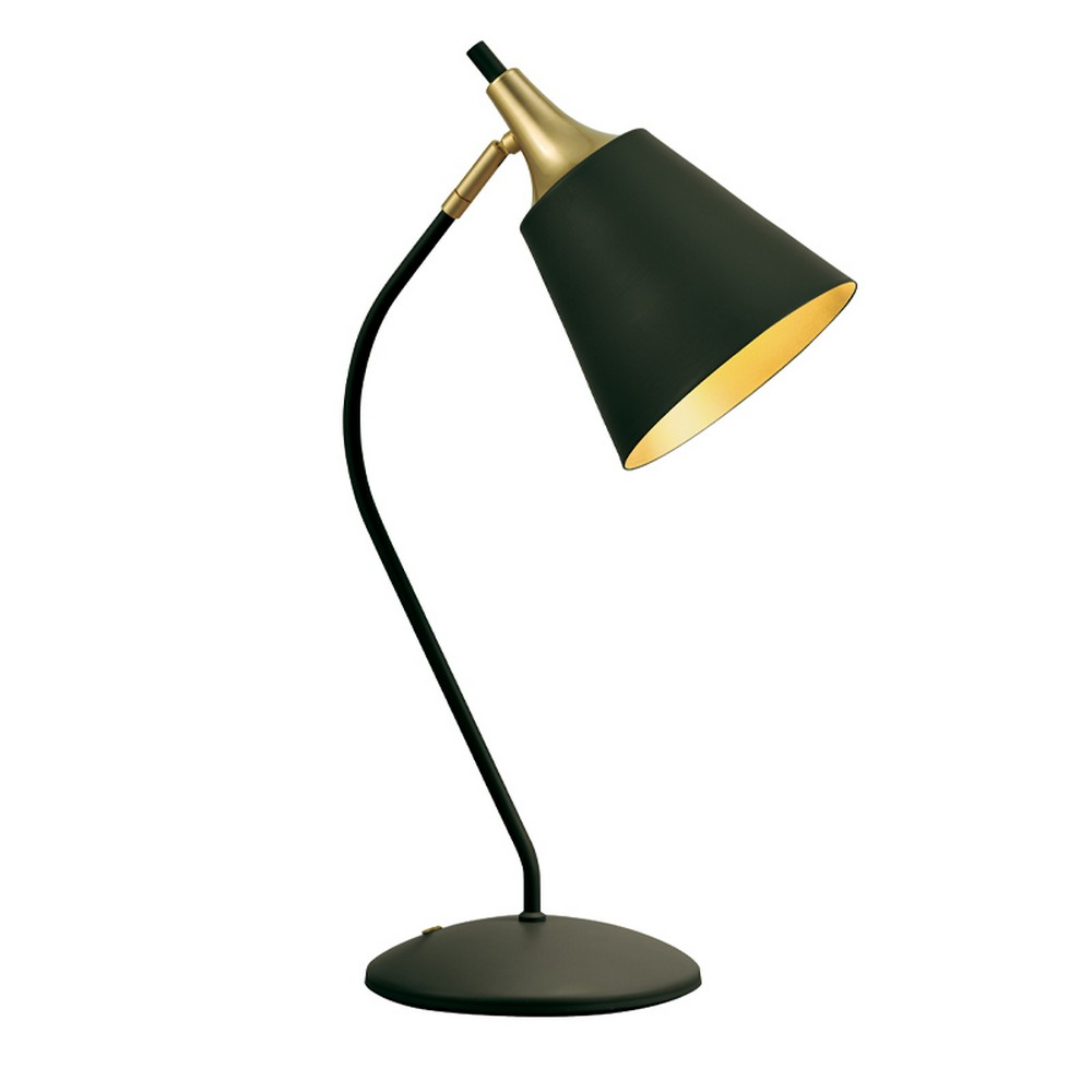 Κλασσικό επιτραπέζιο φωτιστικό από μέταλλο σε μαύρο χρώμα εξωτερικά και χρυσό εσωτερικά.