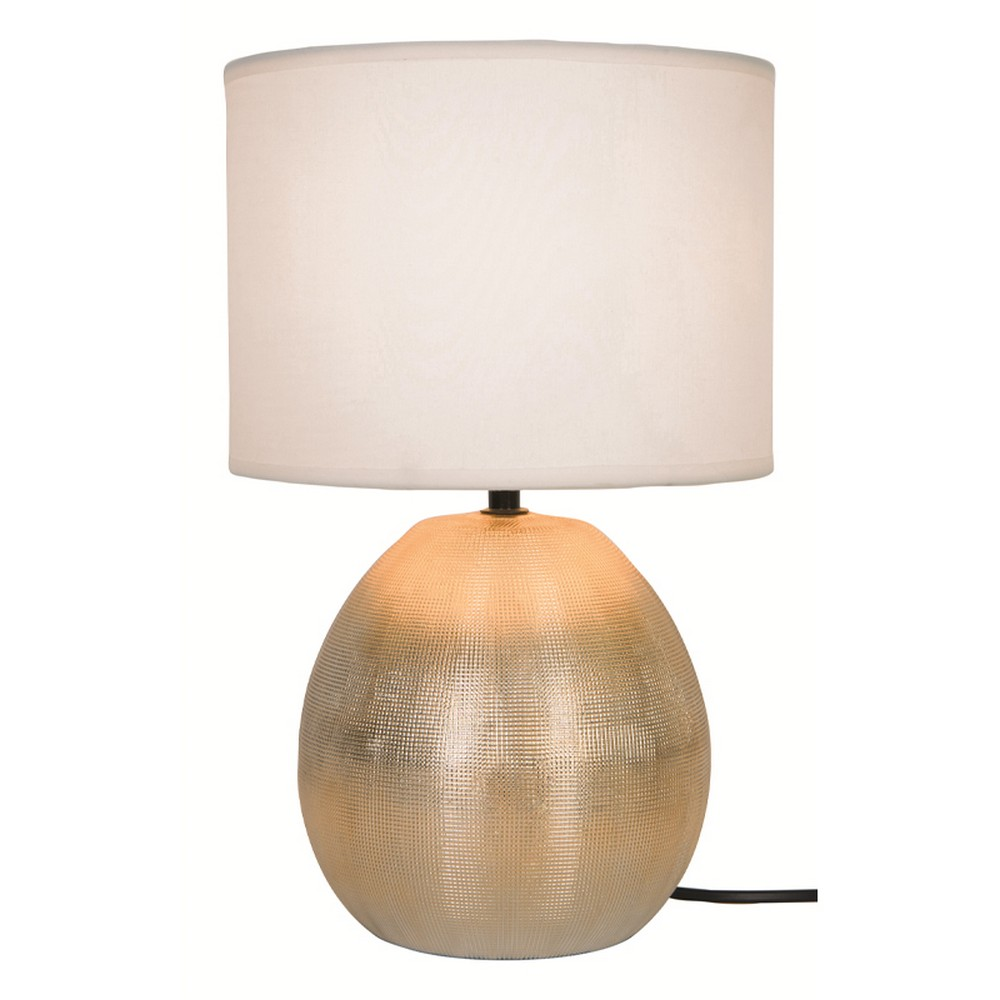 Μοντέρνο πορτατίφ με υφασμάτινο μπεζ καπέλο και κεραμική βάση σε χρυσό χρώμα.