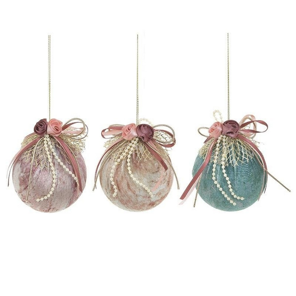 Χριστουγεννιάτικες μπάλες υφασμάτινες σε 3 χρώματα με διάσταση 7x10cm