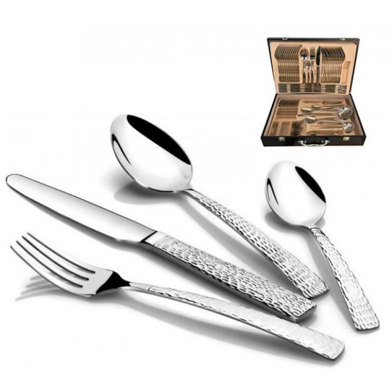 Σετ μαχαιροπίρουνα 72 τεμαχίων 18/10 γυαλιστερά σε ξυλοθήκη. Κατασκευασμένα από ανοξείδωτο ατσάλι υψηλής ποιότητας για ανθεκτικότητα και λαμπερή εμφάνιση. Η πολυτελής ξυλοθήκη προσφέρει πρακτική αποθήκευση και κομψή παρουσίαση. Ιδανικό για καθημερινή χρήση ή ως δώρο σε ειδικές περιστάσεις.