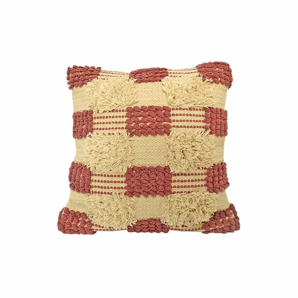 Μαξιλάρι-κάλυμμα διαστάσεων 45x45εκ από 100% βαμβάκι σε εκρού-ροζ χρώμα, ιδανικό για ανανέωση καναπέ, πολυθρόνας ή κρεβατιού. Η υψηλής ποιότητας βαμβακερή ύφανση προσφέρει απαλή υφή και αντοχή στη χρήση, ενώ ο κομψός συνδυασμός εκρού και ροζ δίνει ζεστασιά και στυλ στον χώρο σας. Ιδανικό για minimal, μοντέρνα ή ρομαντικά διακοσμητικά θέματα.