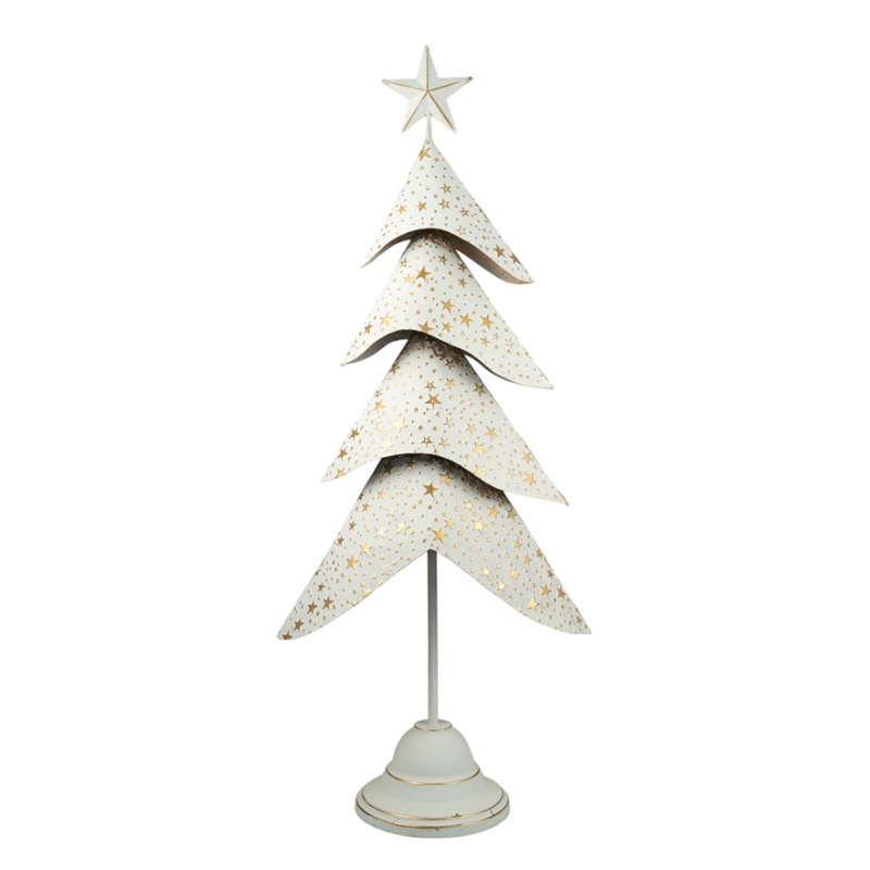 Αναδείξτε τη χριστουγεννιάτικη σας διακόσμηση με το εντυπωσιακό μεταλλικό δέντρο με αστέρια σε λευκό και χρυσό χρώμα. Με ύψος 78,5cm, ξεχωρίζει για τη φινέτσα και τη λάμψη του, αποτελώντας ένα ιδανικό centerpiece για το σαλόνι ή την είσοδο του σπιτιού. Η ανθεκτική μεταλλική κατασκευή και ο κομψός χρωματικός συνδυασμός δημιουργούν πολυτερή και γιορτινή ατμόσφαιρα. Ένα μοναδικό στολίδι υψηλής αισθητικής που θα τραβήξει όλα τα βλέμματα.